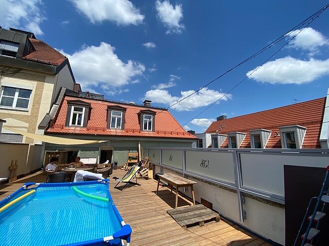 Und wenn die Sonne scheint, ist unsere Dachterrasse der place-to-be! Genieße die Sonne, entspanne dich in den Abendstunden und lass die Ruhe der Umgebung auf dich wirken.